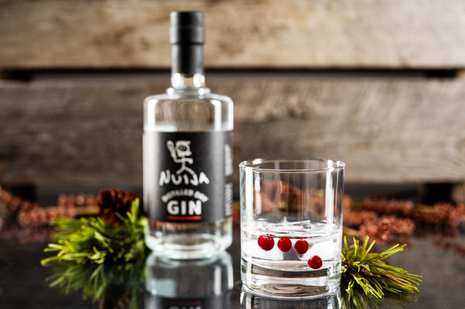 Nuija Gin jäillä: Pohjalle jäitä, kaada päälle Nuija Gin ja heitä perään pari puolukkaa. Nauti (vastuullisesti).
